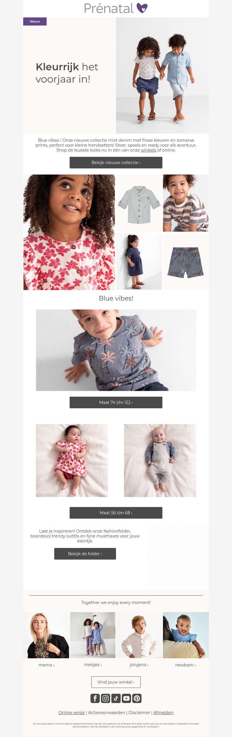 Prénatal introduceert een nieuwe collectie vol denim en frisse kleuren. Perfect voor kleine trendsetters die klaar zijn voor de zomer. Maak je kleintje blij met stoere en speelse outfits. Bekijk nu de nieuwste collectie in de winkel of online!