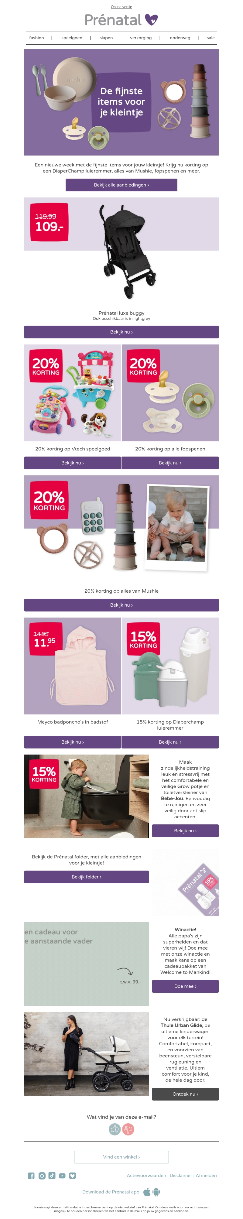 Een nieuwe week met de fijnste items voor jouw kleintje! Krijg nu korting op een DiaperChamp luieremmer, alles van Mushie, fopspenen en meer. Mis deze aanbiedingen niet en shop nu bij Prénatal!