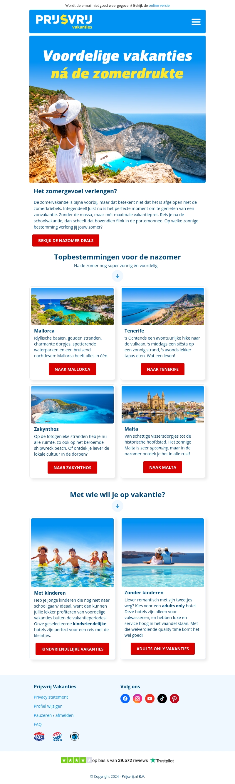 Verleng jouw zomergevoel met een prachtige nazomervakantie zonder de drukte. Ontsnap naar adembenemende bestemmingen zoals Mallorca, Tenerife, Zakynthos, en Malta. Ideaal voor gezinnen met kinderen én voor volwassenen die willen ontspannen zonder kinderen.