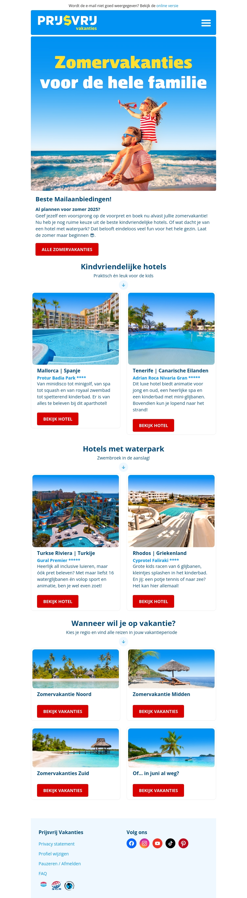 Plan nu je zomervakantie met onze uitgebreide selectie van kindvriendelijke hotels en hotels met waterpark. Geniet van luxe en avontuur in bestemmingen zoals Mallorca, Tenerife, Turkse Riviera en Rhodos. Boek vroeg en verzeker jezelf van een onvergetelijke vakantie voor het hele gezin. Laat de zomerpret beginnen met onze speciale aanbiedingen!