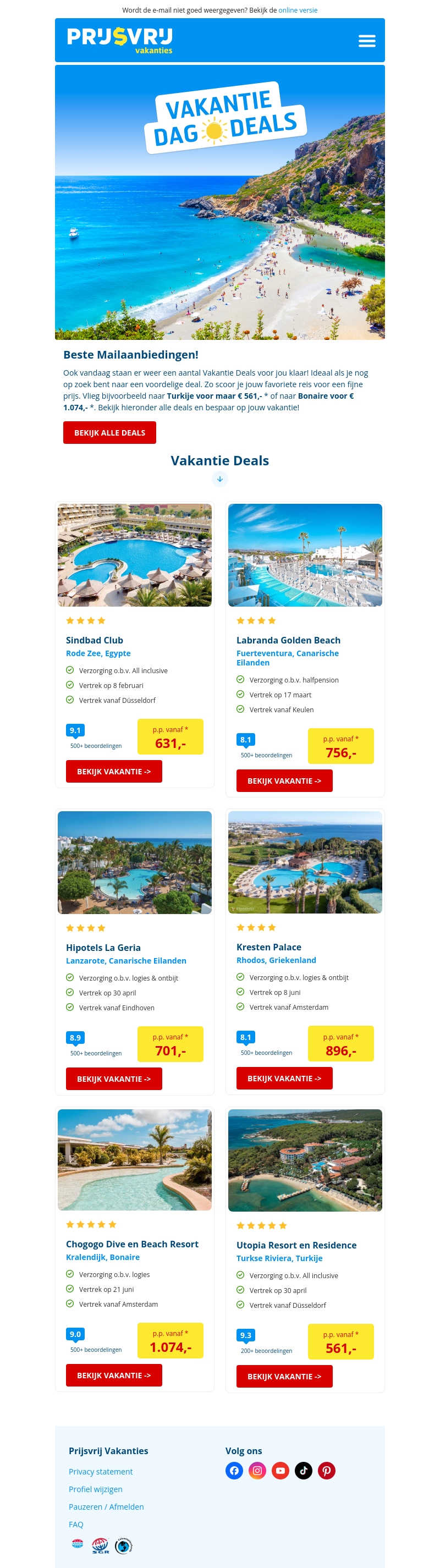 Ontdek de beste vakantieaanbiedingen voor Turkije, Bonaire, en meer. Boek jouw droomvakantie voordelig via Prijsvrij vakanties. Vergeet niet alle deals te bekijken en plan je volgende zonvakantie nu.