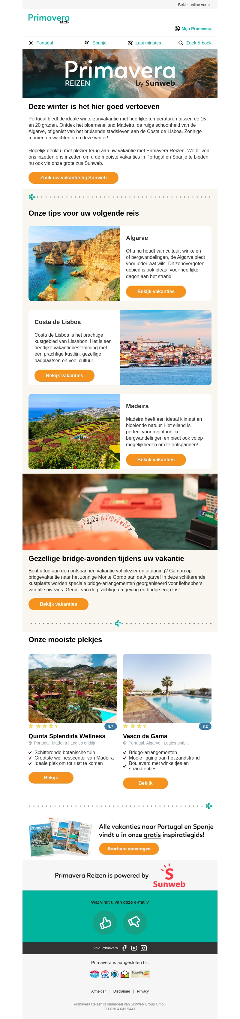 Deze winter biedt Portugal de perfecte vakantie met milde temperaturen. Ontdek de prachtige natuur van Madeira of geniet van culturele rijkdom in Lissabon en de Algarve. Primavera Reizen bundelt de beste aanbiedingen voor een zonnige ontsnapping.
