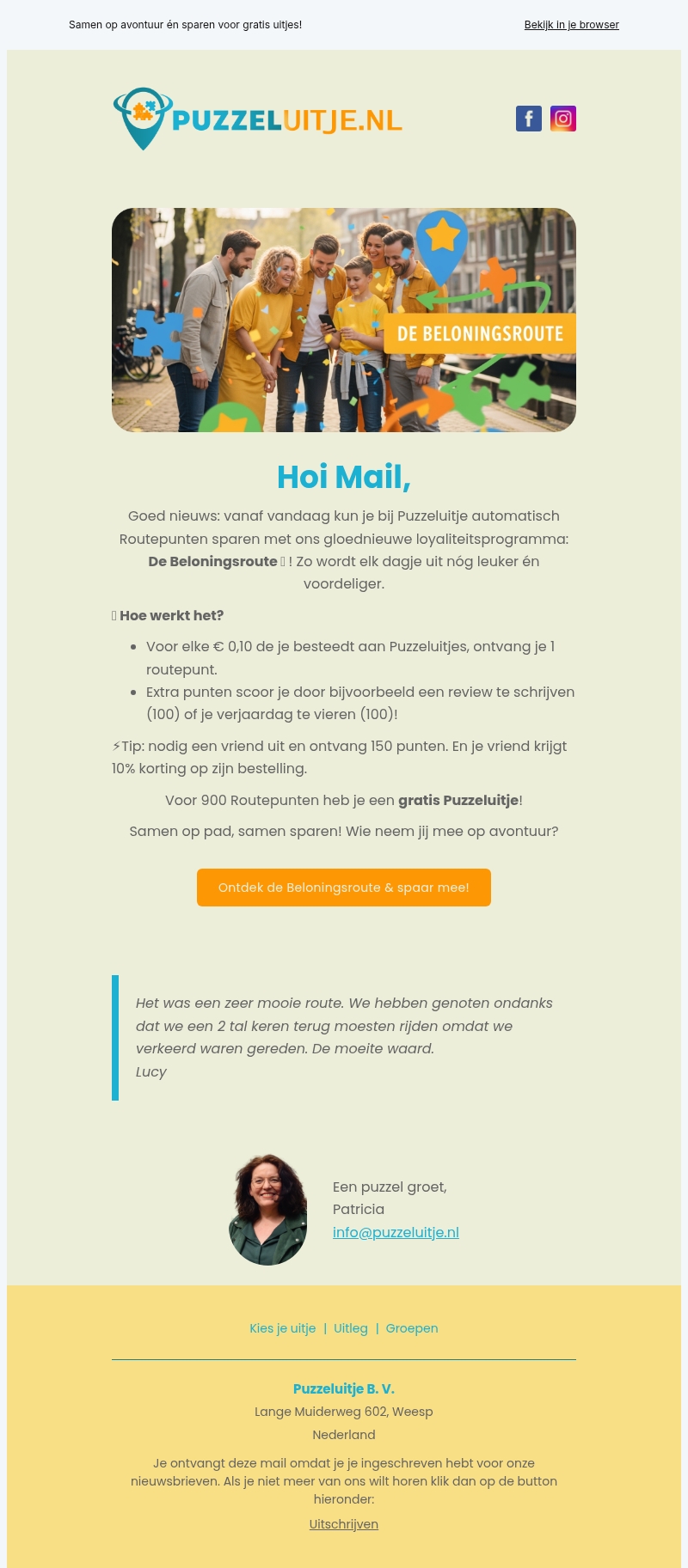 Spaar nu voor gratis Puzzeluitjes met de Beloningsroute! π