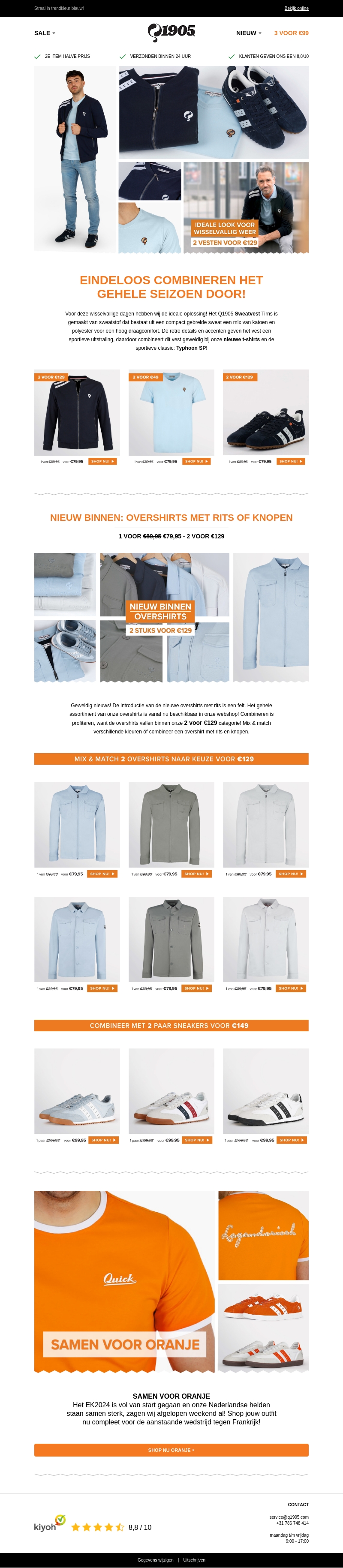 Bekijk nu de nieuwste kledingstukken en combinaties van 1905, ideaal voor elk seizoen. Van comfortabele sweatshirts tot trendy overshirts. Profiteer van onze speciale aanbiedingen zoals 2 voor €129 en onze oranje collectie voor het EK2024. Mis deze geweldige deals niet!
