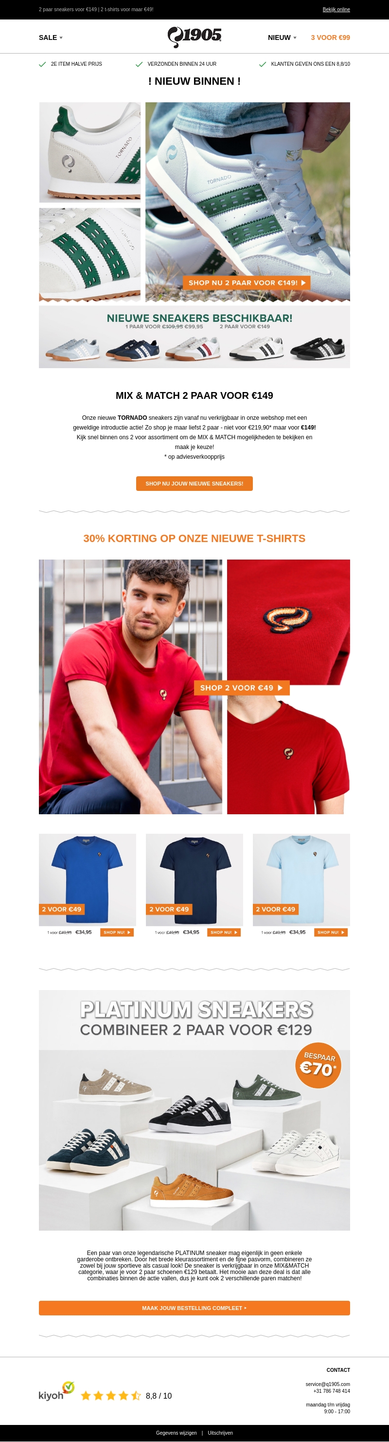 Maak kennis met onze nieuwe zomercollectie! Profiteer van de introductiedeals op de TORNADO sneakers en ontvang 30% korting op onze nieuwe T-shirts. Mix & Match sneakers verkrijgbaar voor €149 en T-shirts voor €49. Bekijk ons laatste assortiment nu online!