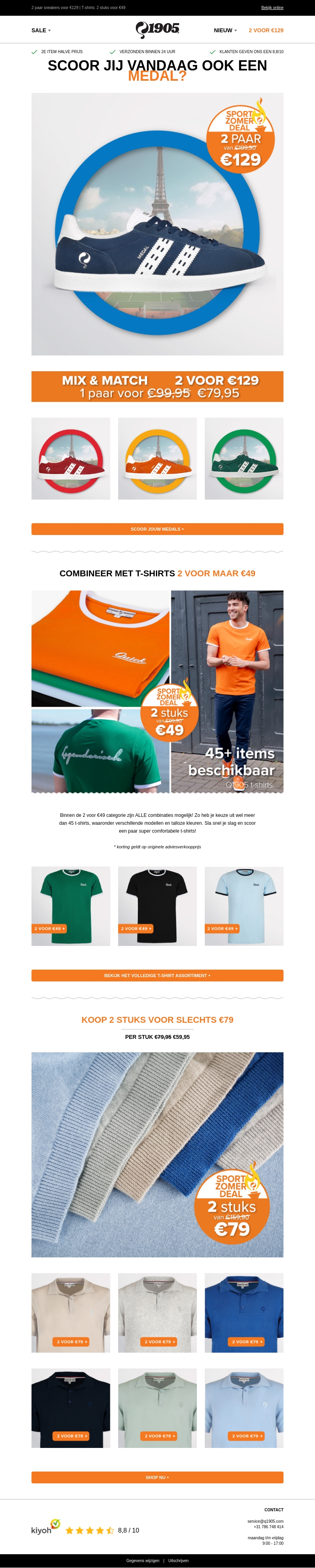Profiteer van de sportzomerdeal en koop 2 paar sneakers voor slechts €129. Combineer met T-shirts voor 2 stuks voor maar €49 en kies uit meer dan 45+ items. Mis deze deals niet!
