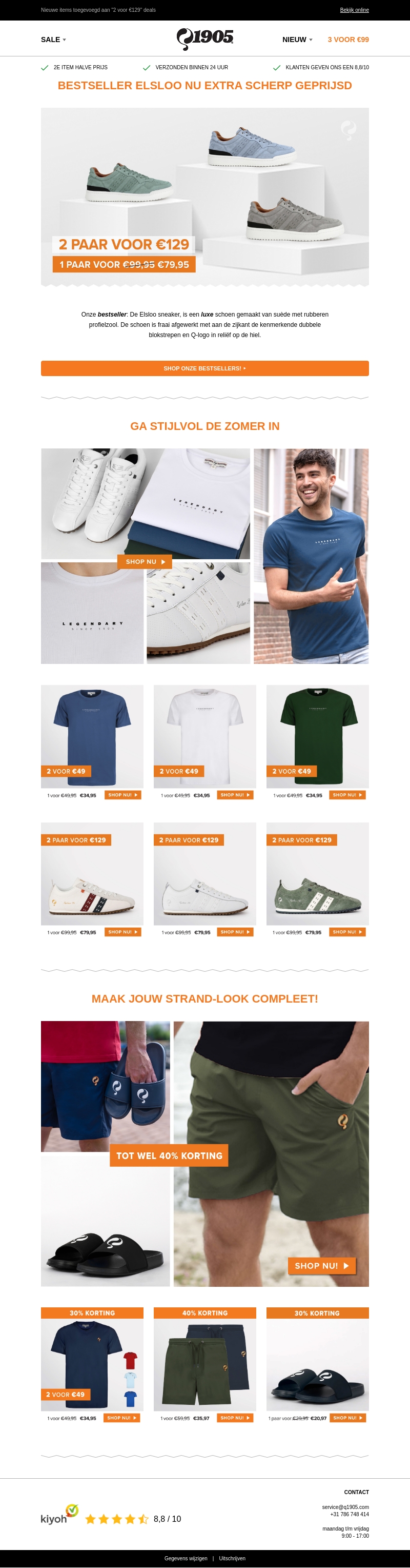 Onze Bestsellers zijn nu extra scherp geprijsd! Scoor 2 paar voor slechts €129 of 1 paar voor €79,95. Ga stijlvol de zomer in met onze veelzijdige shirts en schoenen. Maak jouw strand-look compleet met onze comfortabele slippers en shorts, nu met kortingen tot wel 40%!