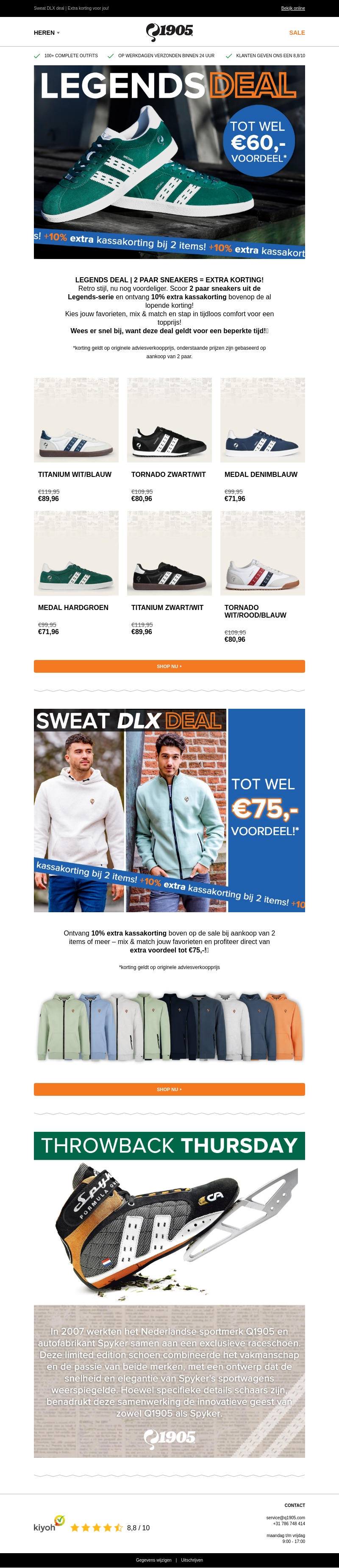 Grijp nu je kans op een legendarische deal! Krijg tot wel €60,- voordeel met extra 10% kassakorting bij aankoop van twee items uit onze Legends-collectie. Of je nu houdt van retro stijl of vernieuwing zoekt, deze aanbieding is voor een beperkte tijd beschikbaar. Kies jouw favoriete paar sneakers en profiteer van extra comfort met deze unieke aanbiedingen. Verlies deze kans niet!