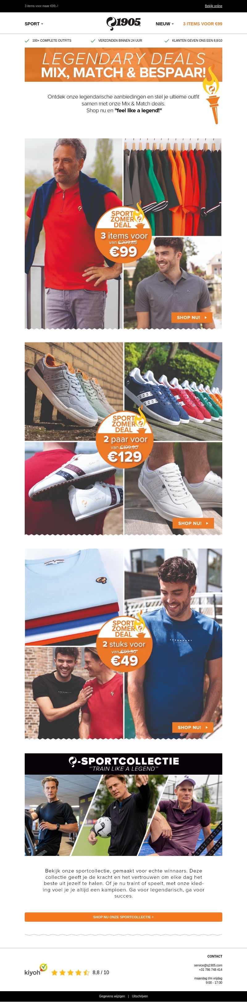 Ontdek legendarische aanbiedingen en stel je ultieme outfit samen met onze Mix & Match deals. Van sportieve zomeroutfits tot comfortabele schoenen en kleding, je vindt alles wat je nodig hebt om 'feel like a legend'. Profiteer van onze sportzomer deals en bespaar flink. Mis deze kans niet en shop nu!