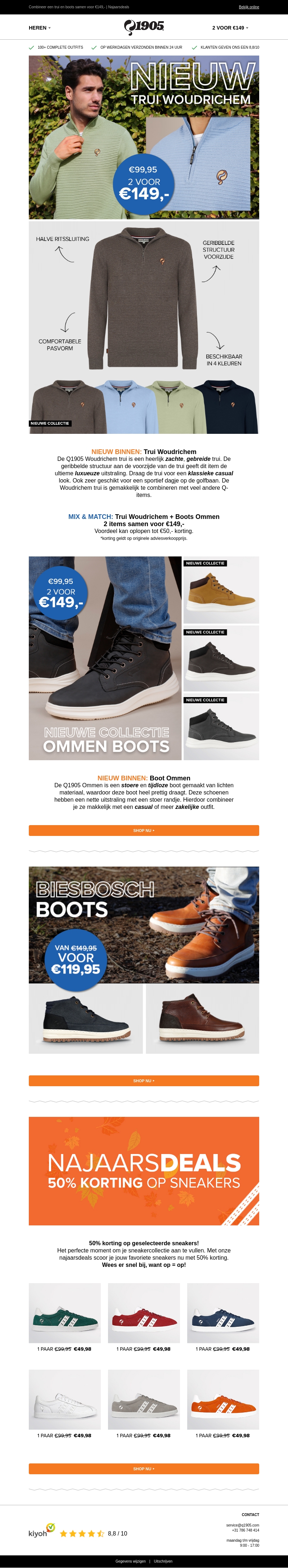De nieuwe Trui Woudrichem van Q1905 is een must-have voor de herfst. Gemaakt van een ultrazachte stof met een geribbelde structuur, biedt deze trui optimaal comfort en stijl. Combineer het met een van onze Ommen Boots voor een complete look. Profiteer van onze najaarsdeals voor extra korting op sneakers. Ontdek nu de nieuwste collectie.