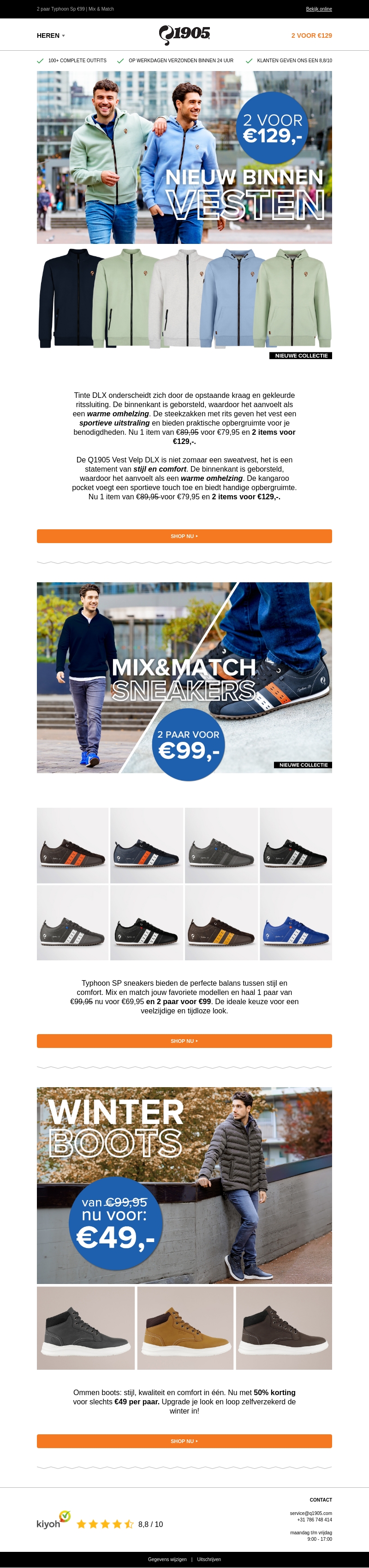 Verwelkom de winter met onze gloednieuwe collectie warme vesten, nu in de aanbieding: twee voor €129. Combineer stijl en comfort met onze Typhoon SP sneakers, te mixen en matchen voor een scherpe prijs. Vergeet niet de Ommen boots met geweldige korting om je look compleet te maken voor de winter.