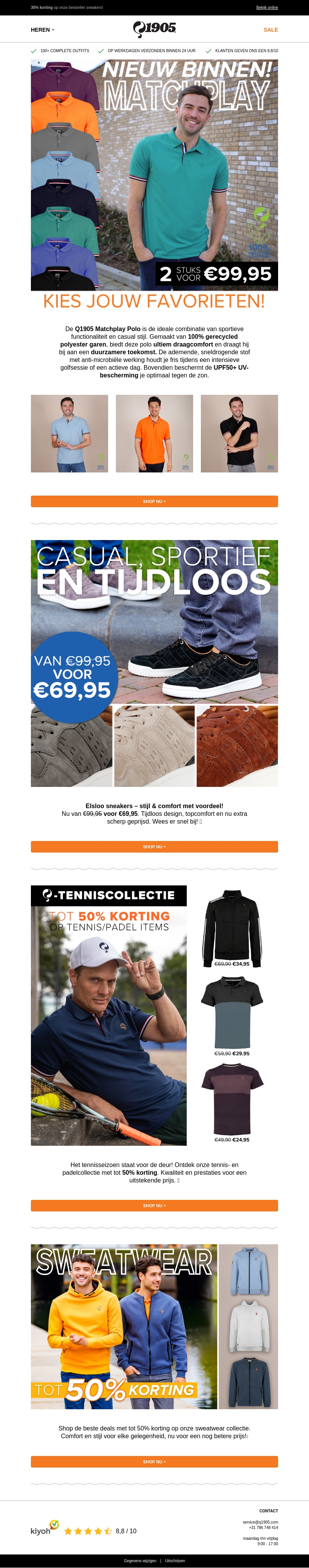 De nieuwe Matchplay-collectie is gearriveerd! Scoor nu twee stijlvolle polo's voor slechts €99,95. De casual en sportieve outfits bieden comfort en duurzaamheid dankzij hoogwaardige materialen. Mis ook onze grote kortingen op sneakers en sweatwear niet. Ontdek daarnaast de tenniscollectie met kortingen tot wel 50%. Bezoek nu onze website voor uw favoriete deals!