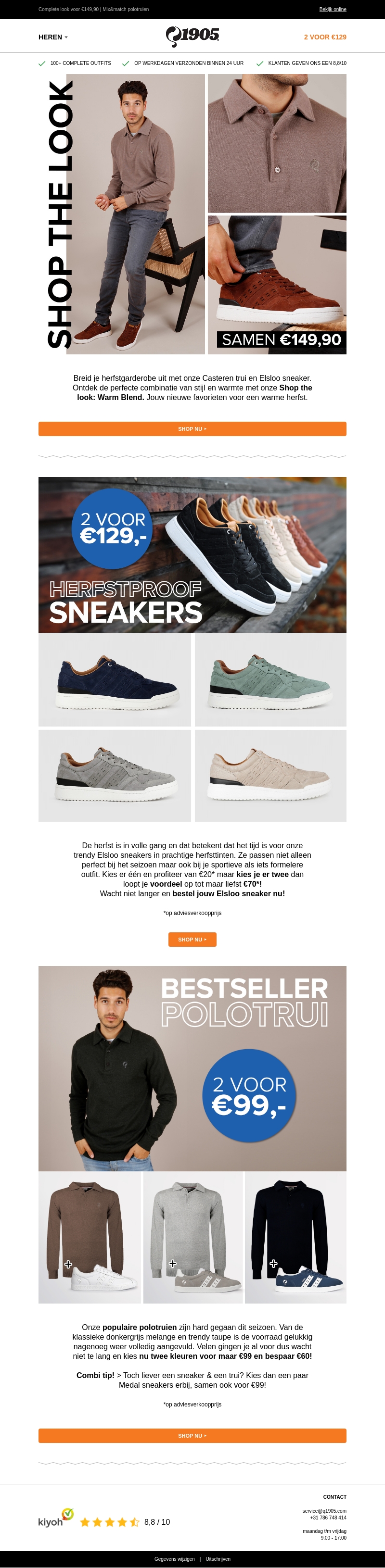 Verras jezelf met de nieuwe 'Warm Blend' collectie. Deze herfststijl combineert comfort en elegantie met trendy kleuren en texturen. Profiteer van speciale acties zoals 2 voor €129,- op sneakers en 2 voor €99,- op polotruien. Mis deze kans niet voor een stijlvol seizoen.