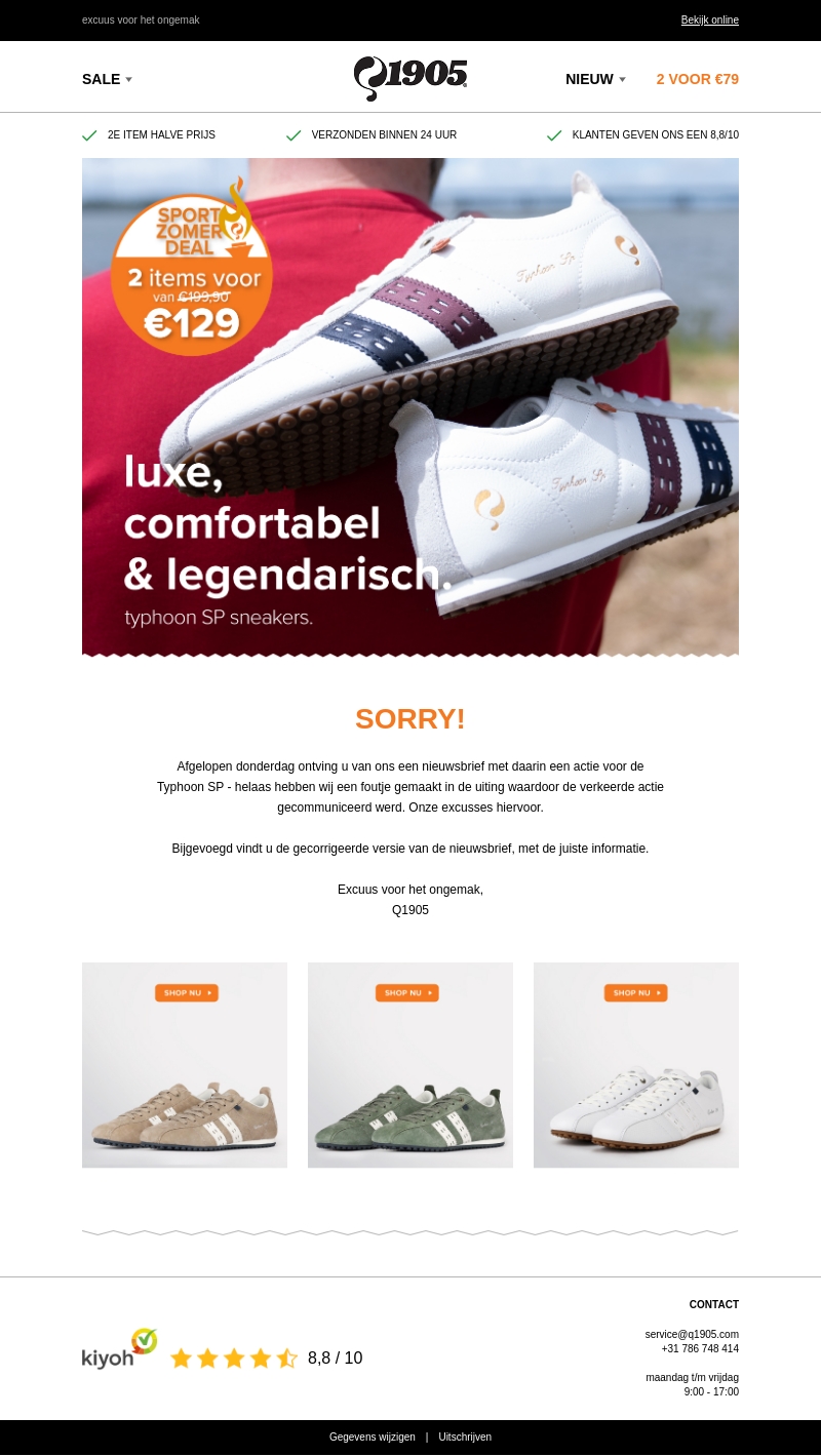 Ontvang nu 2 paar Typhoon SP sneakers voor slechts €129 in plaats van €199,90. Deze nieuwsbrief bevat een rectificatie van de eerder foutieve actie. Typhoon SP sneakers staan bekend om hun luxe, comfort en legendarische ontwerp. Mis deze Sport Zomer Deal niet!