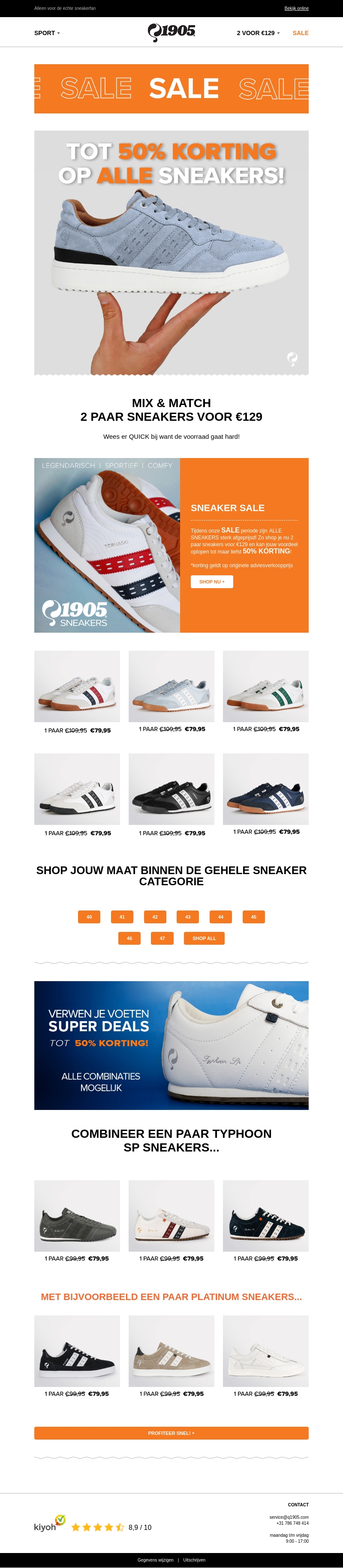 Profiteer van onze geweldige sale met tot 50% korting op alle sneakers! Daarnaast kun je nu ook gebruik maken van onze mix & match aanbieding: 2 paar sneakers voor €129. Wees er snel bij want de voorraad gaat hard. Bekijk ons aanbod en shop je favoriete sneakers nu.