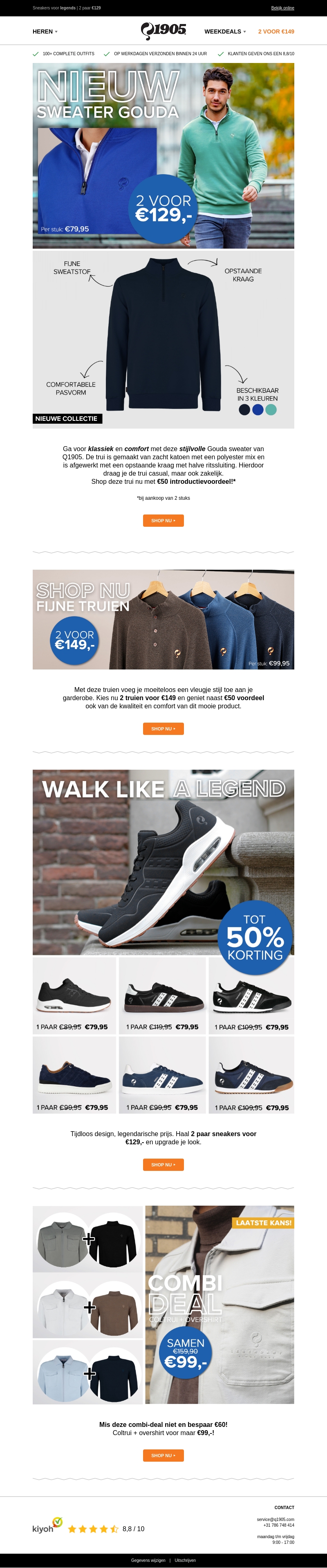 Dit seizoen draait alles om comfort en stijl. Met onze nieuwe Gouda sweaters blijf je warm en modieus. Profiteer van de korting en haal 2 truien voor slechts €129. Ontdek ook onze schoenen deals en bespaar tot 50%. Mis de combi-deal voor coltrui en overshirt niet.