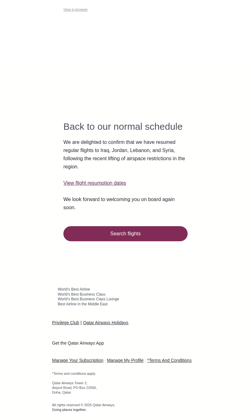Our flights to Iraq, Jordan, Lebanon, and Syria have resumed