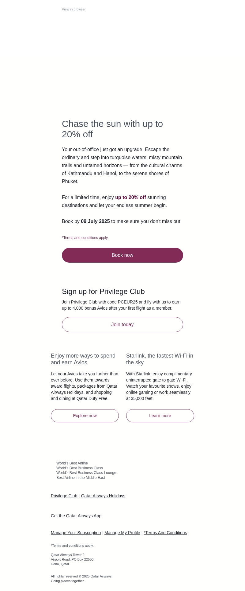 Up to 20% off the World's Best Airline