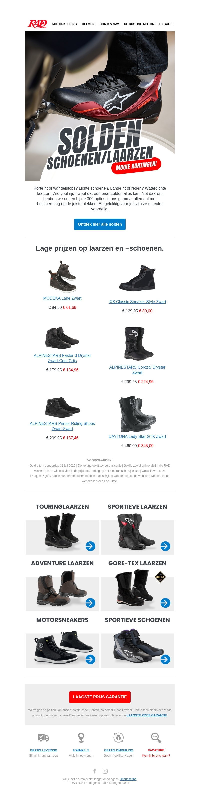 Lage prijzen op laarzen en –schoenen. SOLDEN bij RAD.