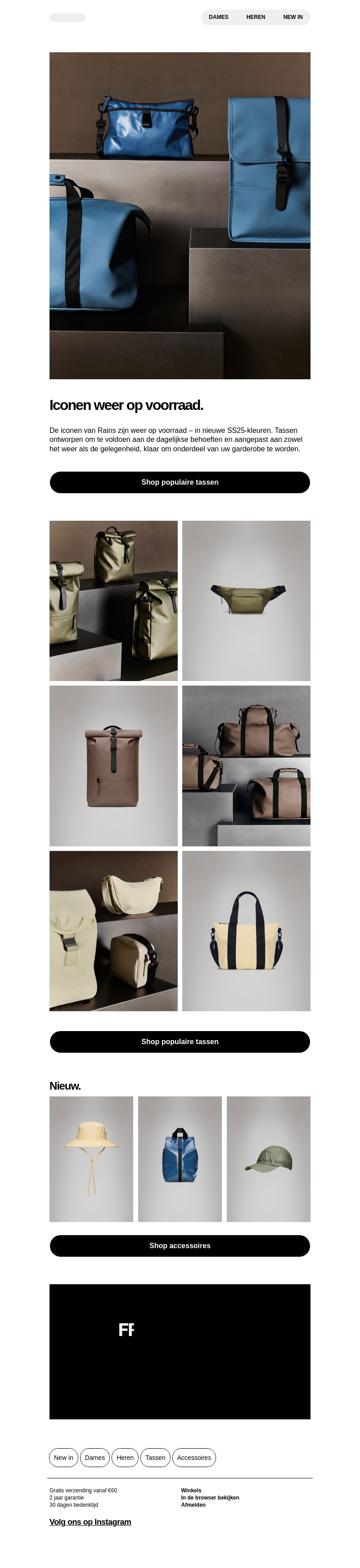 De iconen van Rains zijn weer op voorraad met nieuwe SS25-kleuren. Ontdek stijlvolle tassen ontworpen voor dagelijks gebruik en speciale gelegenheden. Kies uit een gevarieerd aanbod dat perfect bij uw garderobe past. Winkel nu en voeg een vleugje stijl toe aan uw dagelijkse look. Grijp je kans om deze populaire accessoires te bemachtigen. Bezoek onze website voor meer details en aanbiedingen.
