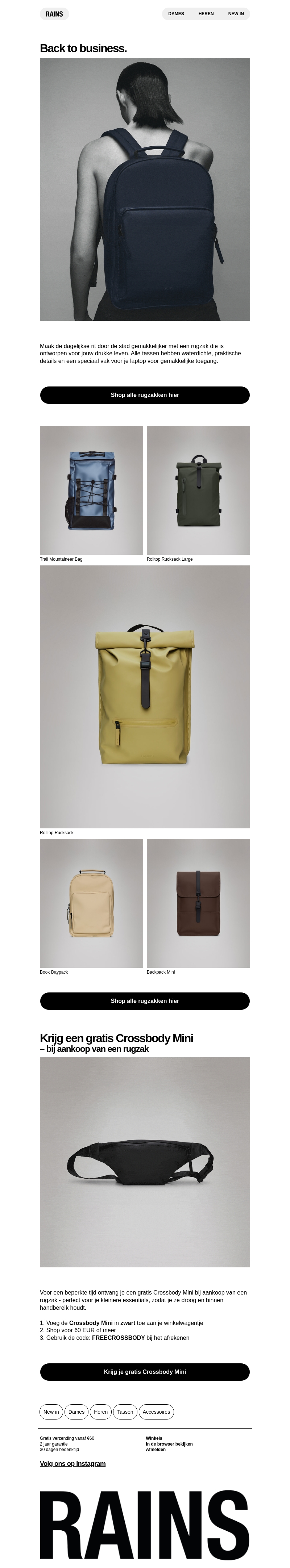 Maak kennis met onze nieuwe rugzakken! Koop nu een rugzak en ontvang gratis een stijlvolle Crossbody Mini. Een perfecte deal voor jouw dagelijkse avonturen.