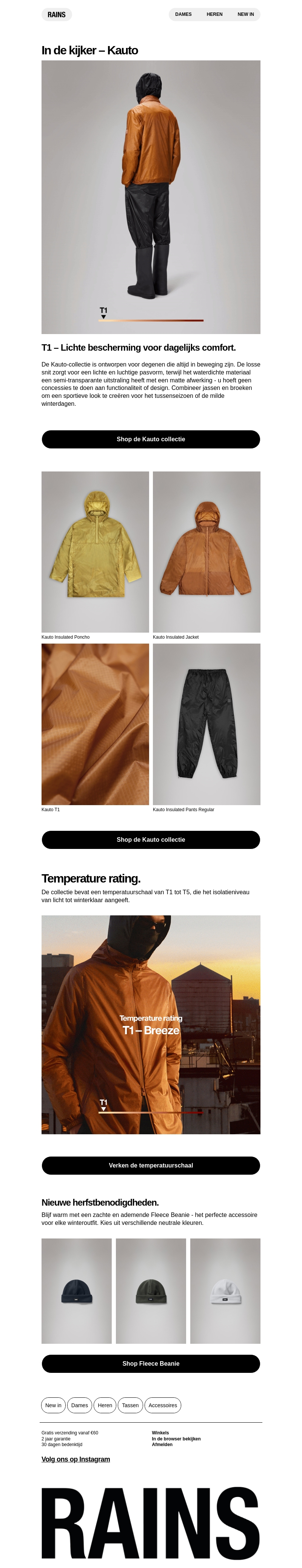 De Kauto-collectie van Rains biedt lichte en comfortabele kleding, perfect voor dagelijks gebruik. Ontworpen voor mensen die altijd in beweging zijn, met een aandacht voor functionaliteit en stijl. Bekijk nu de collectie en vind jouw favoriete stukken.