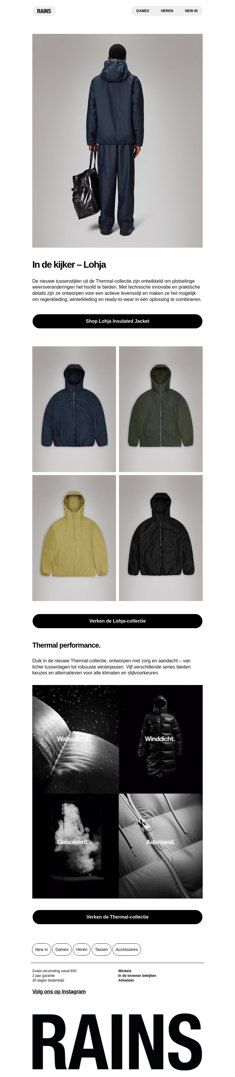 Maak kennis met de Lohja-familie van RAINS, ontworpen om bescherming te bieden tegen plotselinge weersveranderingen. Deze nieuwe collectie combineert regenkleding, winterkleding en ready-to-wear items in één stijlvolle oplossing.