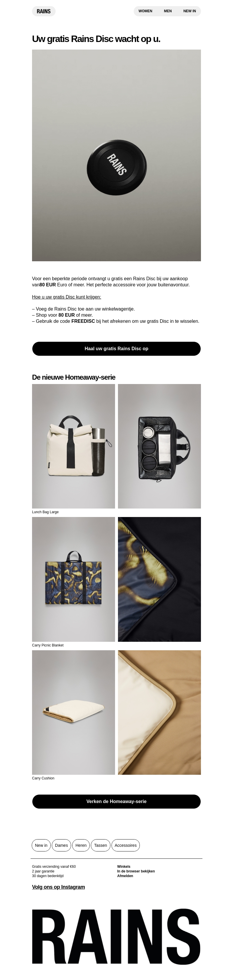 Ontvang een Rains Disc bij uw volgende bestelling