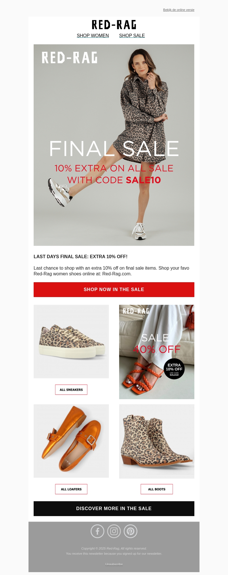 Up to 60% off on final Red-Rag Women pairs.