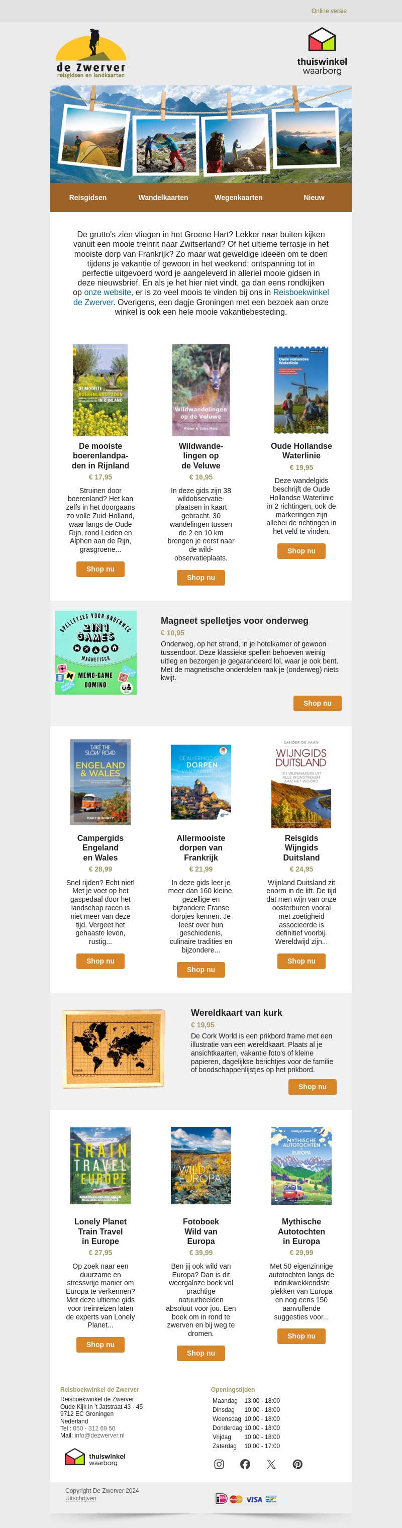De Zwerver presenteert de nieuwste reisgidsen en kaarten voor je volgende vakantie. Ontdek prachtige wandeltochten, schilderachtige dorpen en spannende autotochten. Bezoek onze winkel of website voor meer informatie en inspiratie.