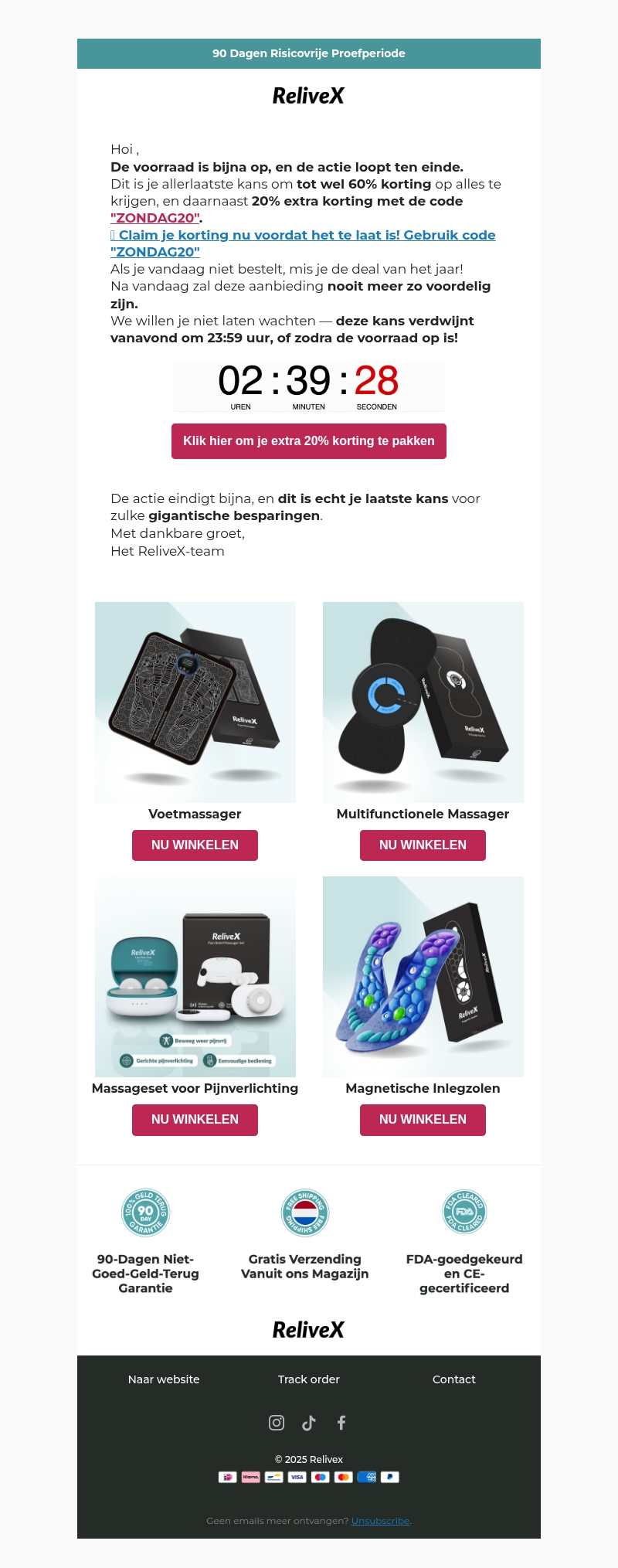 De klok tikt! 60% korting + 20% extra — actie eindigt vanavond!