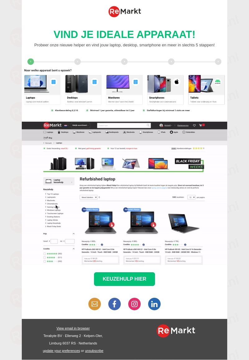 Vind snel en eenvoudig je perfecte apparaat met de ReMarkt Keuzehulp. Of je nu op zoek bent naar een laptop, desktop, monitor, smartphone of tablet, ReMarkt biedt producten van hoge kwaliteit met minimaal 1 jaar garantie. Profiteer van aantrekkelijke Black Friday deals en ontdek hoe je de keuzehulp in slechts vijf stappen gebruikt.