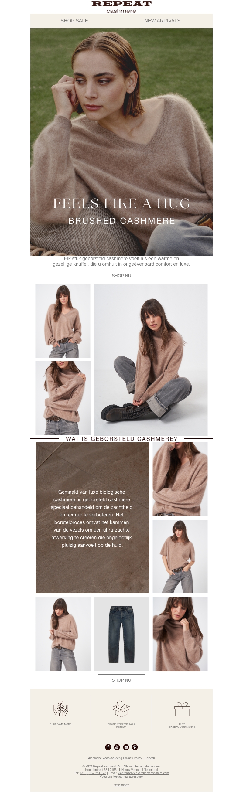 Verwen uzelf met onze nieuwste geborstelde cashmere collectie die voelt als een warme knuffel. Elk stuk is zorgvuldig gemaakt om u in ongeëvenaarde luxe en comfort te hullen. Ideaal voor het herfstseizoen, straalt onze collectie zowel stijl als zachtheid uit. Geniet van duurzaamheid met onze biologische materialen. Shop nu en ervaar het verschil.