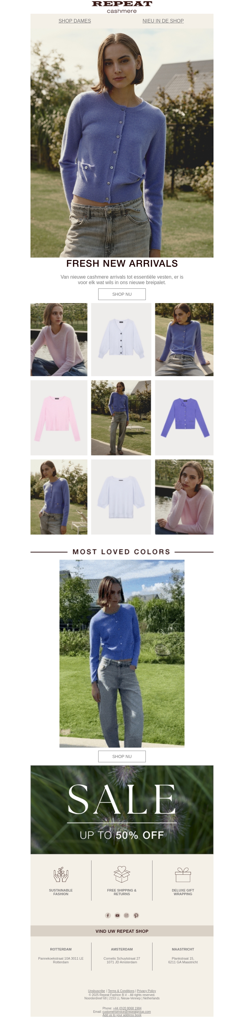 Ontdek de nieuwste cashmere arrivals bij Repeat. Van essentiële vesten tot de populairste kleuren, er is voor ieder wat wils. Mis de kans niet om uw garderobe te vernieuwen met onze stijlvolle en duurzame mode. Geniet daarnaast van een aantrekkelijke korting tot 50%. Duurzame mode, gratis verzending, en luxe cadeauverpakking. Shop nu de nieuwste collectie.
