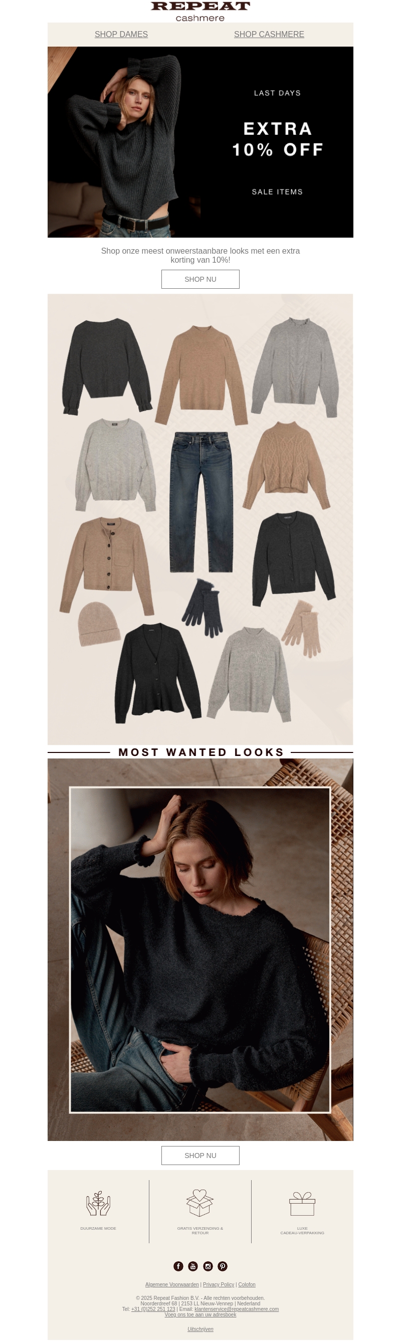 Ontdek de laatste dagen van onze geweldige sale en profiteer van een extra 10% korting op geselecteerde items. Shop onze meest gewilde looks die perfect zijn voor elk seizoen. Geniet van duurzame mode en luxe cashmere items met gratis verzending en retour.