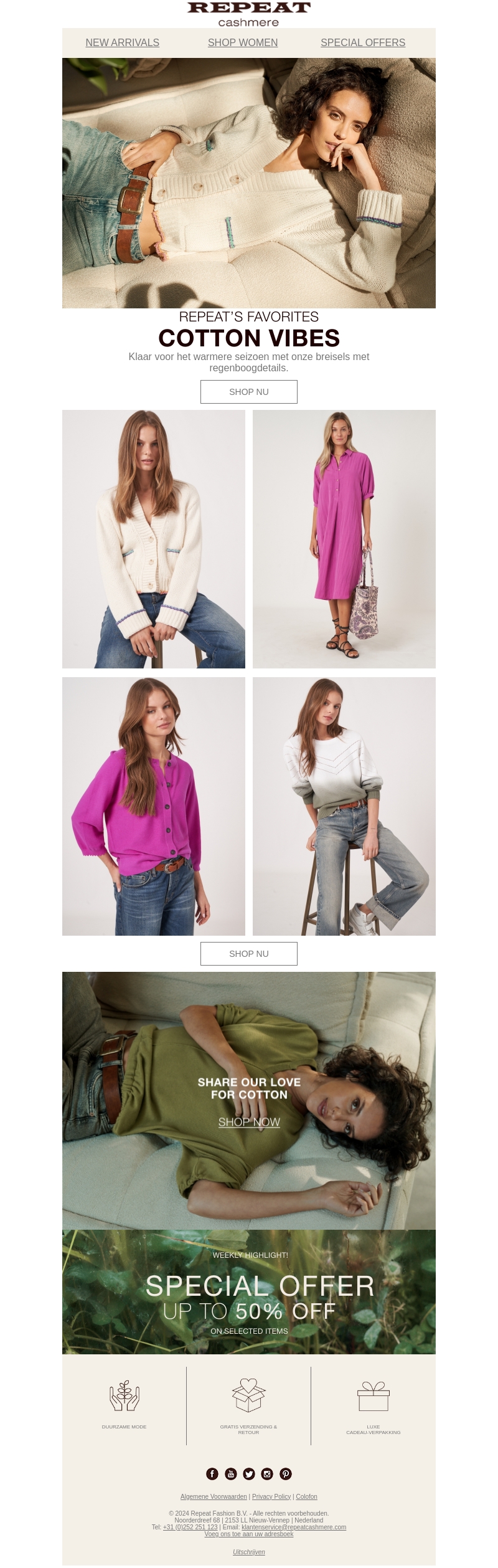 Klaar voor het warmere seizoen met onze nieuwe collectie Cotton Vibes. Ontdek een divers aanbod aan kleurrijke breisels met regenboogdetails. Nu met kortingen tot wel 50% op geselecteerde items. Mis deze kans niet en shop je favoriete stukken uit onze nieuwste collectie.