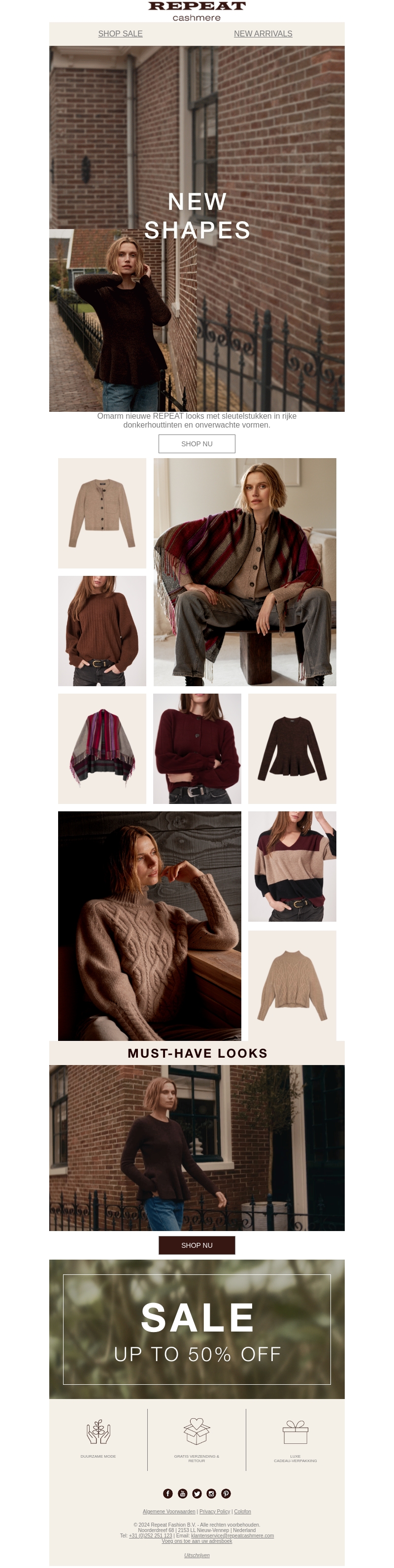 Omarm de nieuwste REPEAT-looks met sleutelstukken in rijke donkere houttinten en onverwachte vormen. Deze collectie biedt veelzijdige opties geschikt voor elke gelegenheid. Ontdek de must-have looks en geniet van kortingen tot 50%. Shop nu!