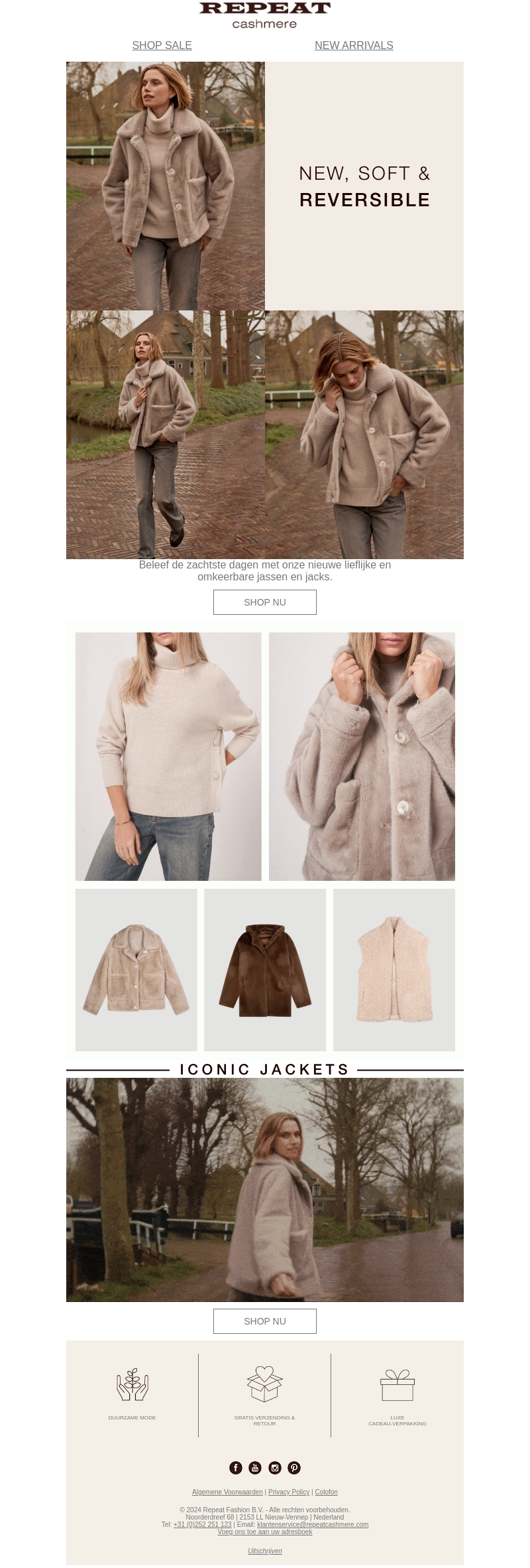 Beleef de zachtste dagen met REPEAT's nieuwste collectie van omkeerbare jassen en truien. Deze stijlvolle en warme items zijn perfect voor de frisse dagen en combineren comfort met elegantie. Zorg ervoor dat je garderobe compleet is met deze must-have jassen. Geniet van gratis verzending en een luxe cadeauverpakking. Verken de iconische jassen nu!