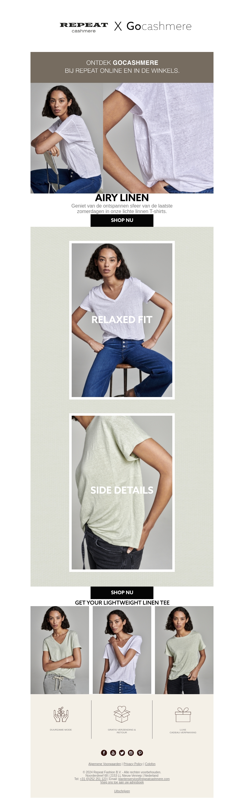 Geniet van de ontspannen sfeer van de laatste zomerdagen met onze lichte linnen T-shirts. Ontdek de relaxed fit voor ultiem comfort en stijl. Bekijk nu de nieuwste collectie luchtige linnen T-shirts van Gocashmere, exclusief bij Repeat. Shop nu en upgrade je zomergarderobe!
