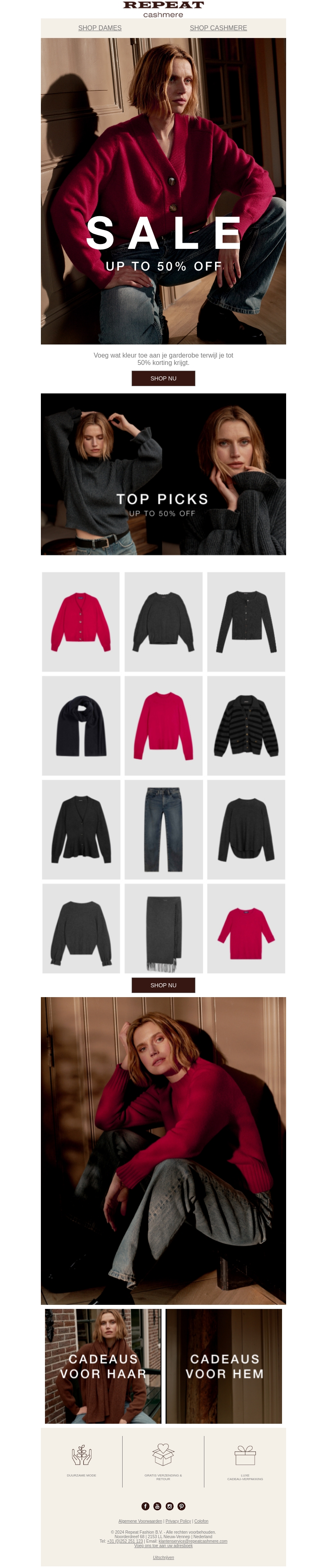 Profiteer van kortingen tot 50% op de prachtige kasjmier collectie van Repeat. Voeg kleur toe aan je garderobe met stijlvolle truien en accessoires. Ontdek onze top picks en vind het perfecte cadeau voor hem en haar. Shop nu om te profiteren van deze beperkte aanbieding en vernieuw je look met onze hoogwaardige stukken.