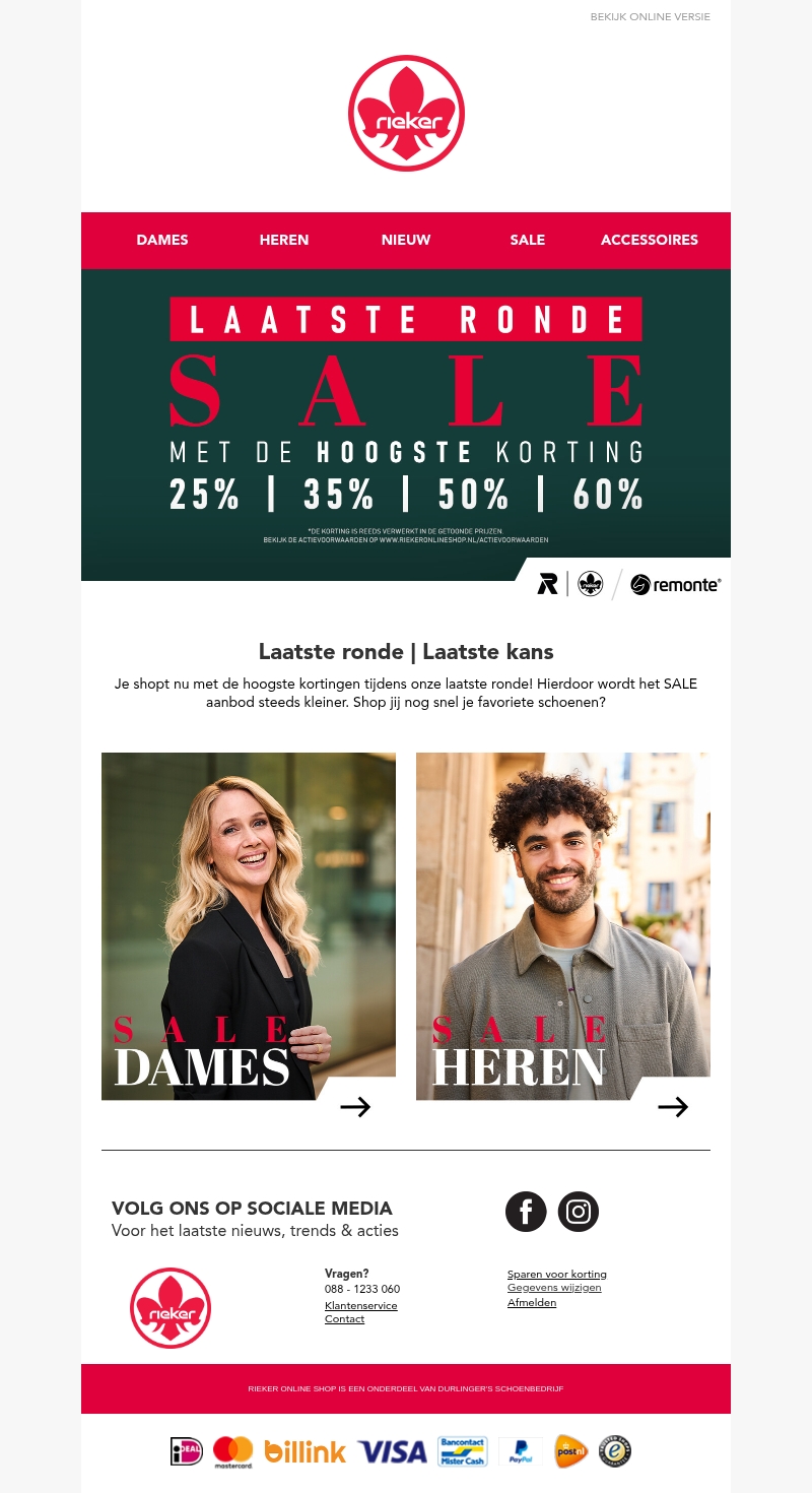 Beleef de ultieme shopervaring met de Rieker Laatste Ronde Sale. Scoor kortingen tot wel 60% op een breed scala aan producten. Wees er snel bij, want de voorraad raakt snel op. Bekijk onze dames- en herencollecties en vind jouw perfecte stijl.