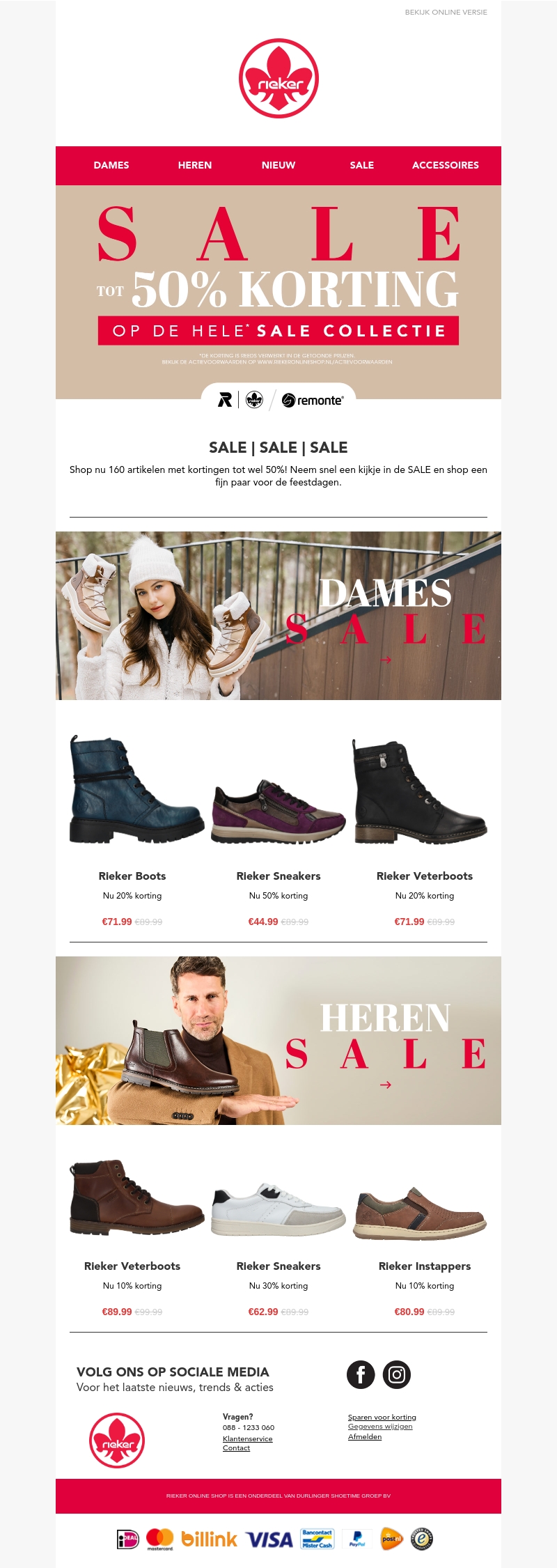 Profiteer van de grote SALE bij Riker en ontvang tot 50% korting op geselecteerde artikelen. Of je nu op zoek bent naar damesboots, sneakers of veterboots voor heren, er is genoeg keuze. Bekijk de volledige sale collectie en shop de trends van dit seizoen. Zorg dat je snel bent voor de beste deals!