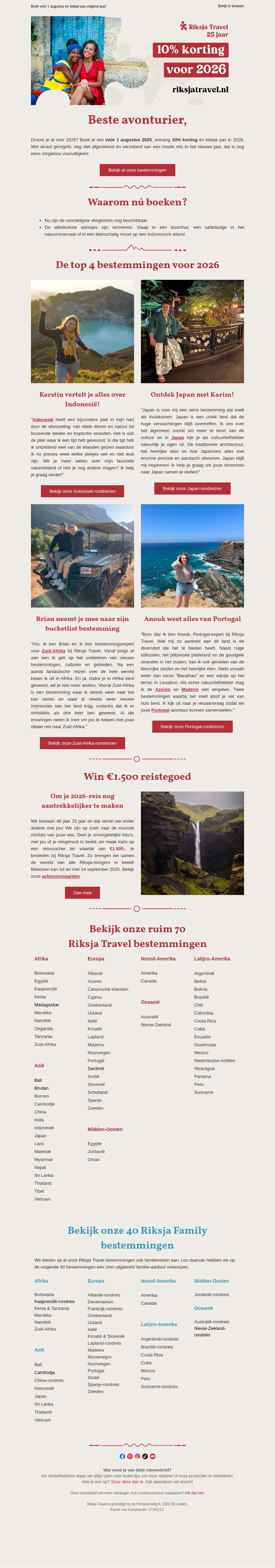 avonturier, krijg nu 10% korting op jouw 2026-reis