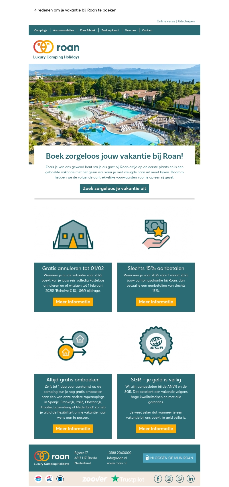 Boek zorgeloos jouw vakantie bij Roan!😊