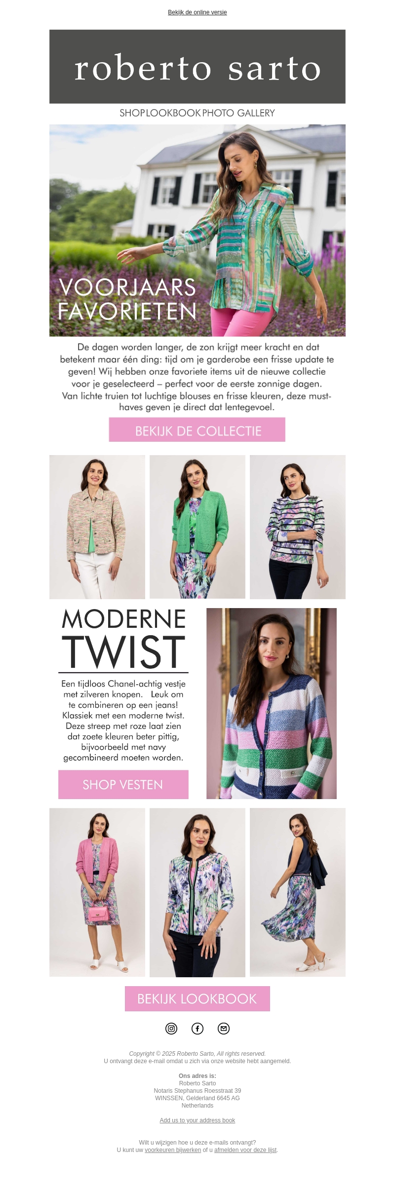 De voorjaarscollectie van Roberto Sarto staat klaar om jouw garderobe te verfrissen. Met lichte truien, luchtige blouses en frisse kleuren ben je helemaal klaar voor de eerste zonnige dagen. Ontdek onze moderne twist op klassiekers en geef jezelf dat ultieme lentegevoel.