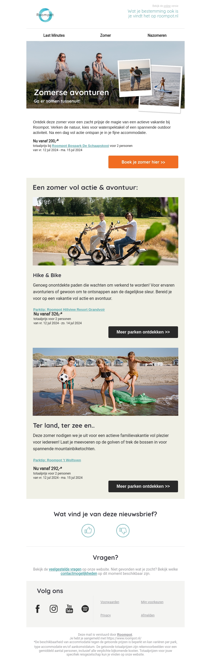 Ervaar een onvergetelijke zomer met spannende activiteiten en buitenavonturen bij Roompot. Ontsnap aan de dagelijkse sleur en beleef een vakantie vol actie en plezier, zowel aan land als op zee. Boek jouw zomervakantie nu voordelig vanaf €200,-.