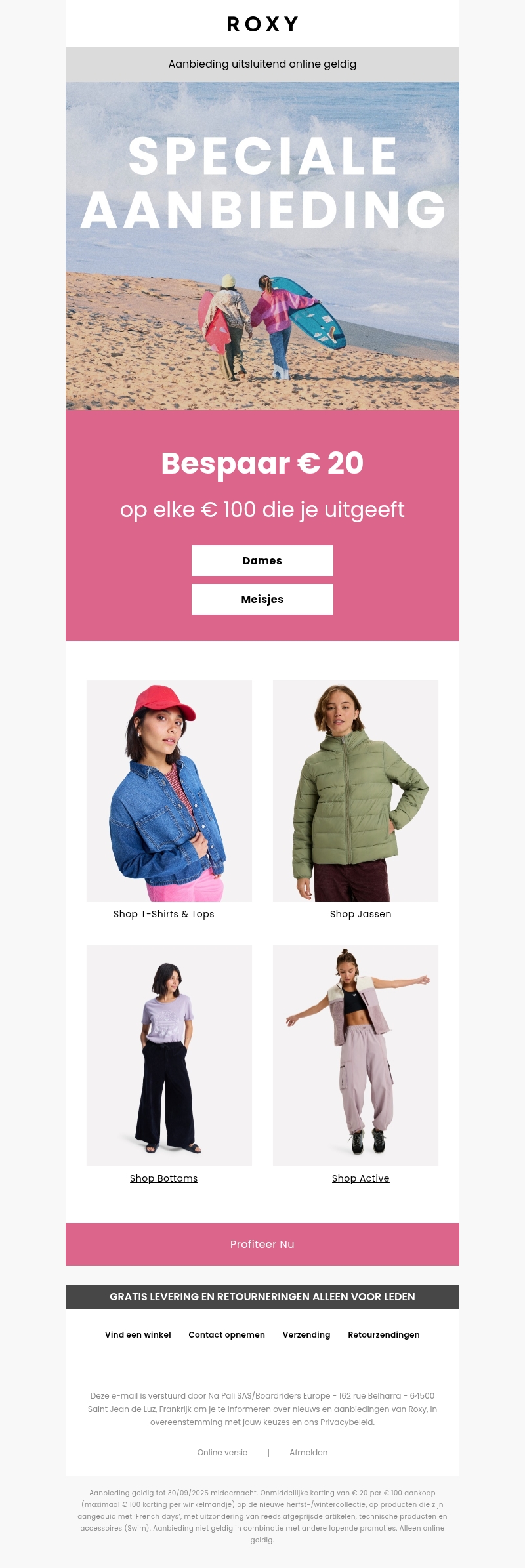 Beperkte tijd geldig: bespaar € 20 op elke € 100 die je besteedt