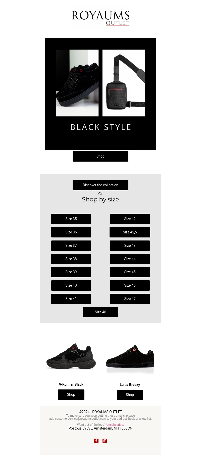 Voeg een stijlvolle toets toe aan je garderobe met onze nieuwste zwarte collectie van Royaums Outlet. Van sneakers tot accessoires, we hebben alles wat je nodig hebt om je look compleet te maken. Ontdek onze verschillende maten en vind de perfecte pasvorm voor jou.