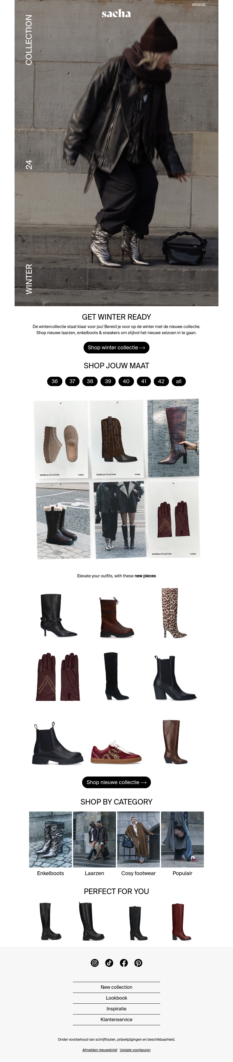 De wintercollectie van Sacha is hier! Ontdek stijlvolle laarzen, enkellaarzen en sneakers, perfect voor het nieuwe seizoen. Beschikbaar in diverse maten en categorieën, waaronder cozy footwear en populaire stijlen. Upgrade je winteroutfits met de nieuwste items van Sacha. Shop nu voor een trendy en warme winterlook.