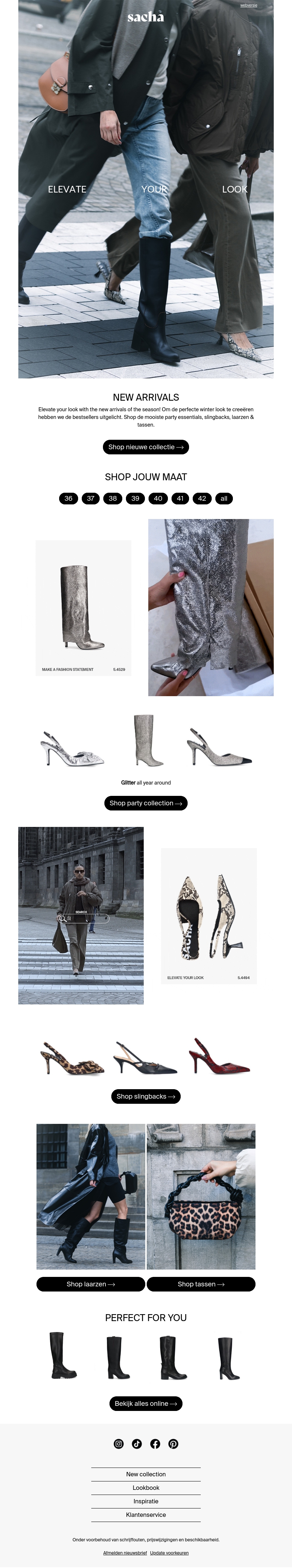 Verhoog je stijl met de nieuwste collectie van Sacha. Ontdek elegante laarzen en glinsterende hakken, perfect voor elke gelegenheid. Onze selectie omvat prachtige winterlooks en feestelijke essentials. Shop nu de must-have items van het seizoen. Vind je perfecte maat en stijl. Maak je outfit compleet met onze modieuze accessoires.